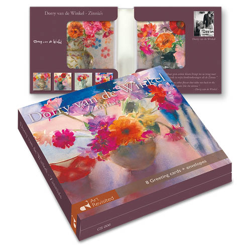 Mapje met 2 x 4 dubbele kunstkaarten van Dorry van de Winkel, zonder tekst van 11 x 11 cm inclusief enveloppen.