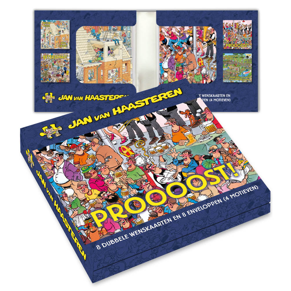Mapje met 2 x 4 dubbele kaarten van Jan van Haasteren, 11 x 11 cm inclusief enveloppen.