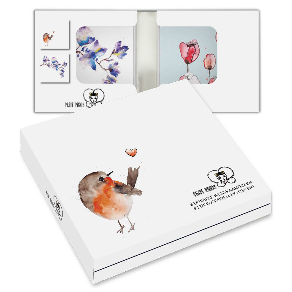 Kaartenmapje Petit Paris – Roodborstje met hartje