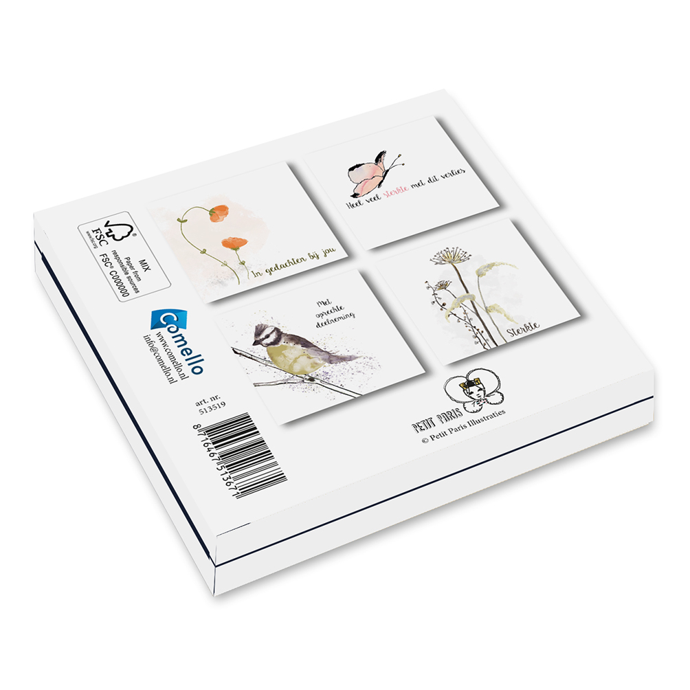 Mapje met 4 x 2 dubbele kaarten van Petit Paris, 11 x 11 cm inclusief enveloppen.