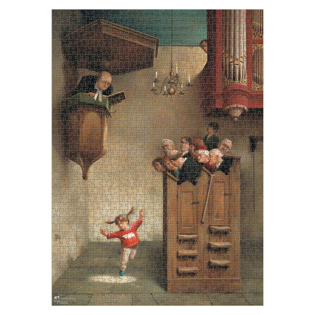 Puzzel, 1000 stukjes, “Dansje in de kerk” van Marius van Dokkum