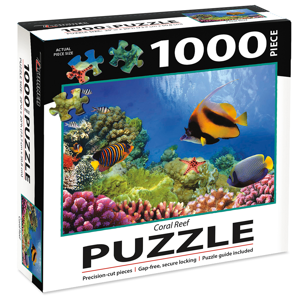 Fotografische puzzels zijn een leuke en uitdagende activiteit om alleen te doen of met vrienden en familie! Puzzel de 1000-delige Koraalrif-puzzel in elkaar, met schitterende en fascinerende beelden. Een poster wordt meegeleverd als voorbeeld. Formaat puzzel: 74×51 cm. // Puzzel met afbeelding van de prachtige onderwater wereld.