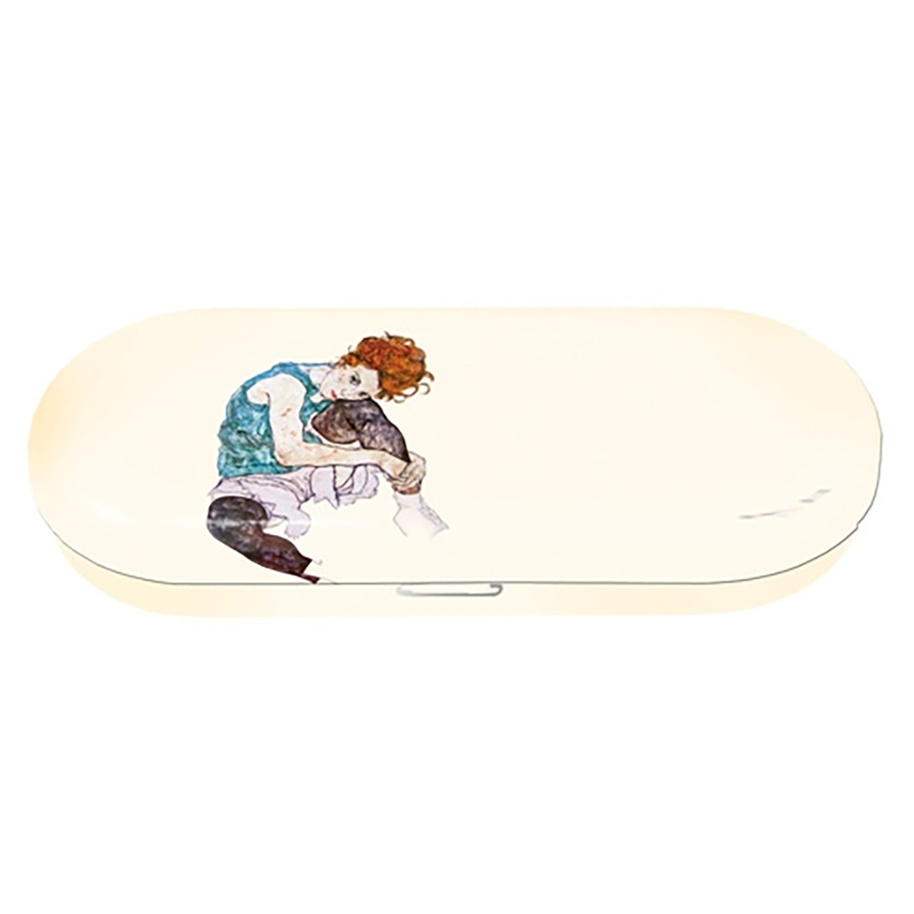 Luxe metalen brillenkoker. Met een prachtige afdruk van Egon Schiele, Sitting Woman