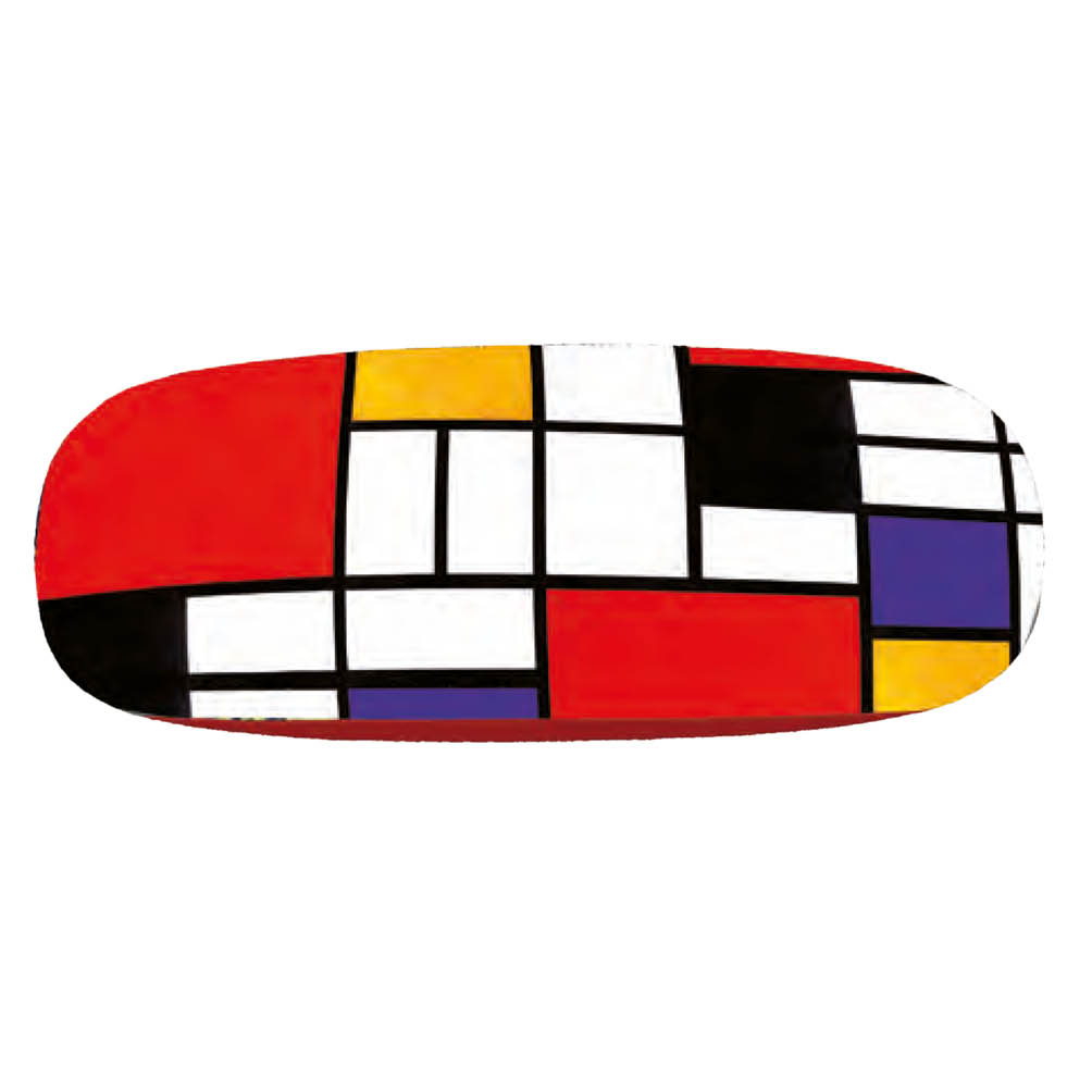 Hardcase brillenkokers (met stof bekleed) met bijpassend brillenpoetsdoekje. Beiden met een prachtige afdruk van Mondriaan (Composition in red, yellow, blue and black).