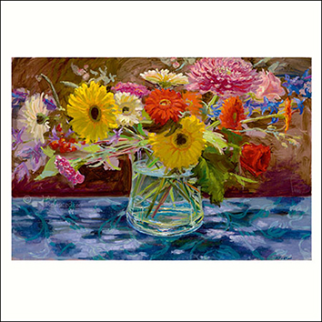 Iemand op originele, persoonlijke wijze verrassen of feliciteren doet u met één van onze prachtige kunstkaarten. Dit zijn dubbele wenskaarten (15×15 cm) met een blanco binnenkant en aan de voorzijde een afbeelding van een kunstwerk. Voor iedere gelegenheid hebben wij wel een kunst wenskaart waarmee u uw boodschap op persoonlijke wijze kunt onderstrepen. Van kunst met een knipoog zoals van Marius van Dokkum, tot sfeervolle stillevens of interieurs van Henk Helmantel. Mooi om te geven of om te versturen, maar ook zeer geschikt om in te lijsten. Keimpe van der Kooi “Boeket”.