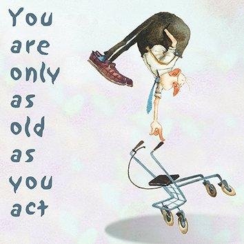 Marius van Dokkum. You are only as old as you act – Opa Jan, dubbele wenskaart, 12x12cm, met bijpassende enveloppe en in cellofaan verpakt.