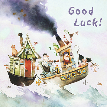 Marius van Dokkum. Good luck – Opa Jan, dubbele wenskaart, 12x12cm, met bijpassende enveloppe en in cellofaan verpakt.