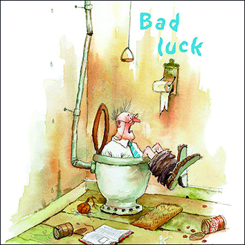 Marius van Dokkum. Bad luck – Opa Jan, dubbele wenskaart, 12x12cm, met bijpassende enveloppe en in cellofaan verpakt.
