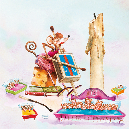 Marius van Dokkum. Opa Jan – Muizenfamilie, dubbele wenskaart, 12x12cm, met bijpassende enveloppe en in cellofaan verpakt.