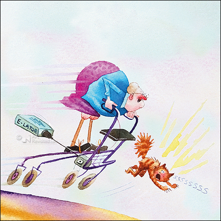 Marius van Dokkum. E-lator – Opa Jan, dubbele wenskaart, 12×12 cm, met bijpassende enveloppe en in cellofaan verpakt.