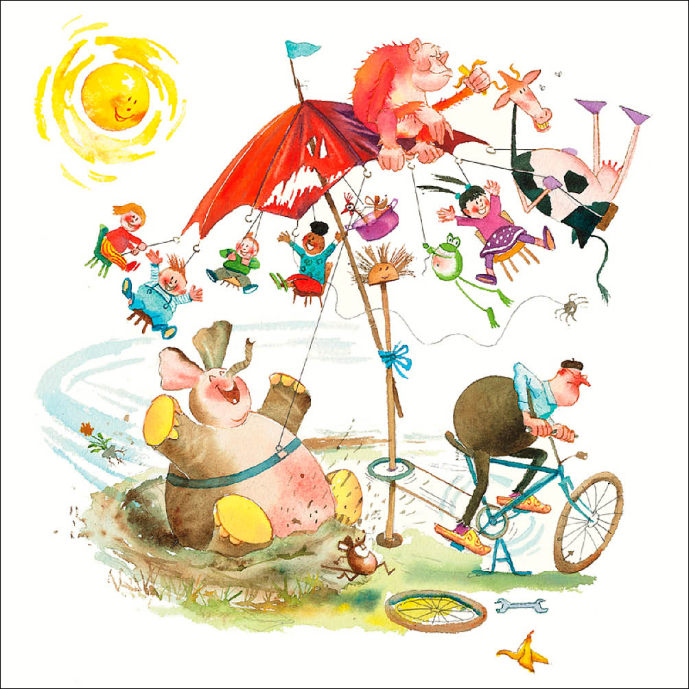 Marius van Dokkum (Het pretpark van opa Jan – Opa Jan), dubbele wenskaart, 12 x 12 cm, met bijpassende enveloppe en in cellofaan verpakt.