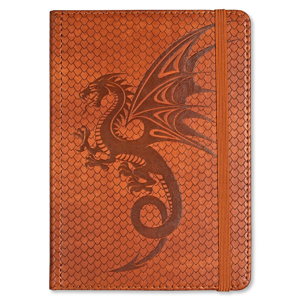 Een prachtige draak bewaakt de pagina’s van dit elegante notitieboekje. De zachte veganistische omslag is voorzien van een decoratief gestikt patroon dat doet denken aan drakenschubben. Het premium papier (120 g/m2) met lichtgrijze lijnen is geschikt voor pen of potlood en is zuurvrij. Verder voorzien van een leeslint, een opbergvak achterin en een elastiek om je notitieboekje dicht te houden. Compact formaat: ca. 13 x 18 cm.