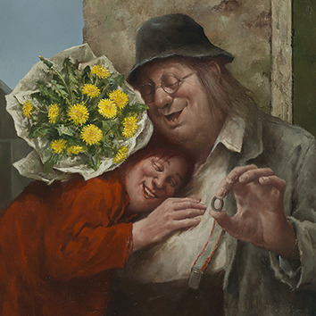 Marius van Dokkum dubbele kaart 15×15 cm, met envelop in cellofaan, Recht uit het hart