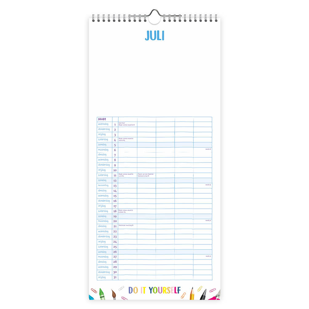 De familienotitiekalender is sinds de introductie ervan één van de populairste kalenders van Nederland. In één overzicht zie je de activiteiten van alle gezinsleden én alle vakanties en feestdagen in Nederland en België. Deze familienotitiekalender kenmerkt zich bovendien doordat je hem zelf kan versieren en inkleuren. Wordt geleverd met handige stickers! Een originele maandnotitiekalender voor het hele gezin (tot en met 5 personen).