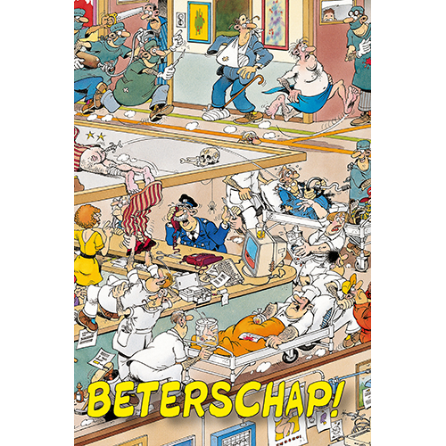 Jan van Haasteren dubbele kaart, 11,3x 17 cm met envelop in cellofaan, Beterschap!