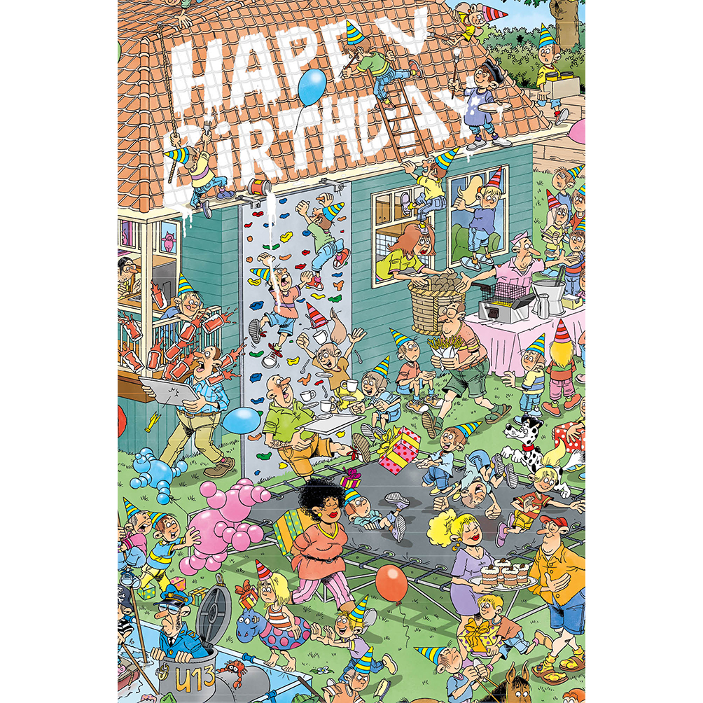 Jan van Haasteren dubbele kaart, 11,3x 17 cm met envelop in cellofaan, Happy Birthday