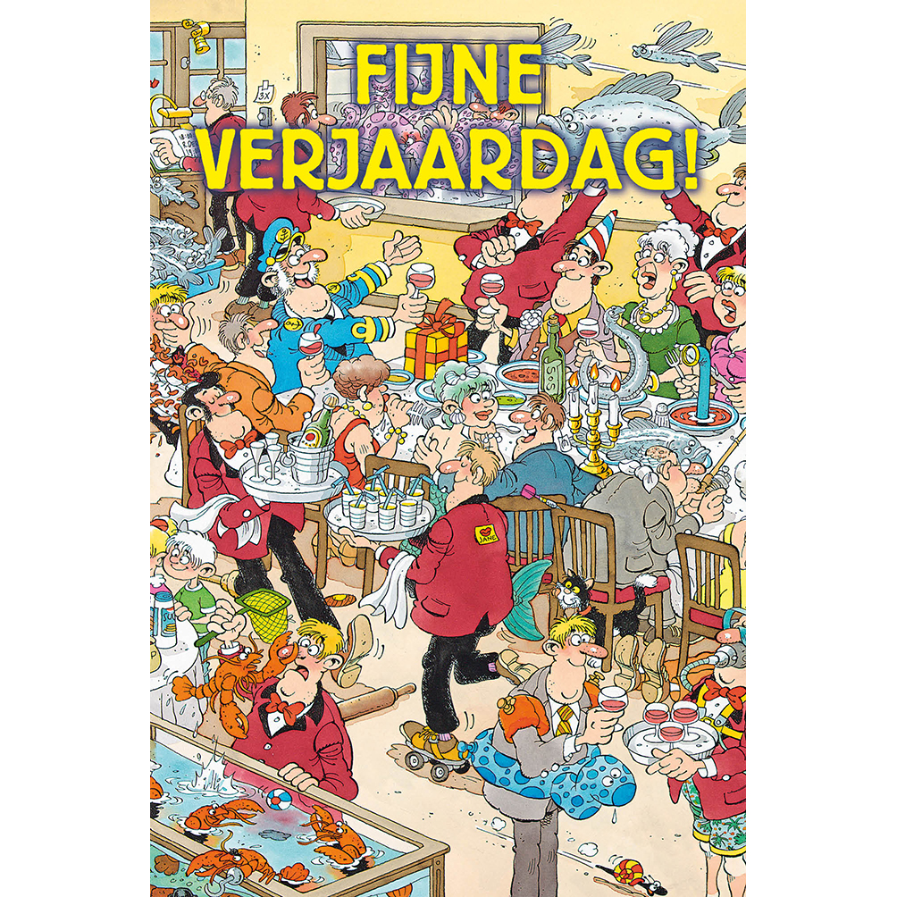 Jan van Haasteren dubbele kaart, 11,3x 17 cm met envelop in cellofaan, Fijne verjaardag!