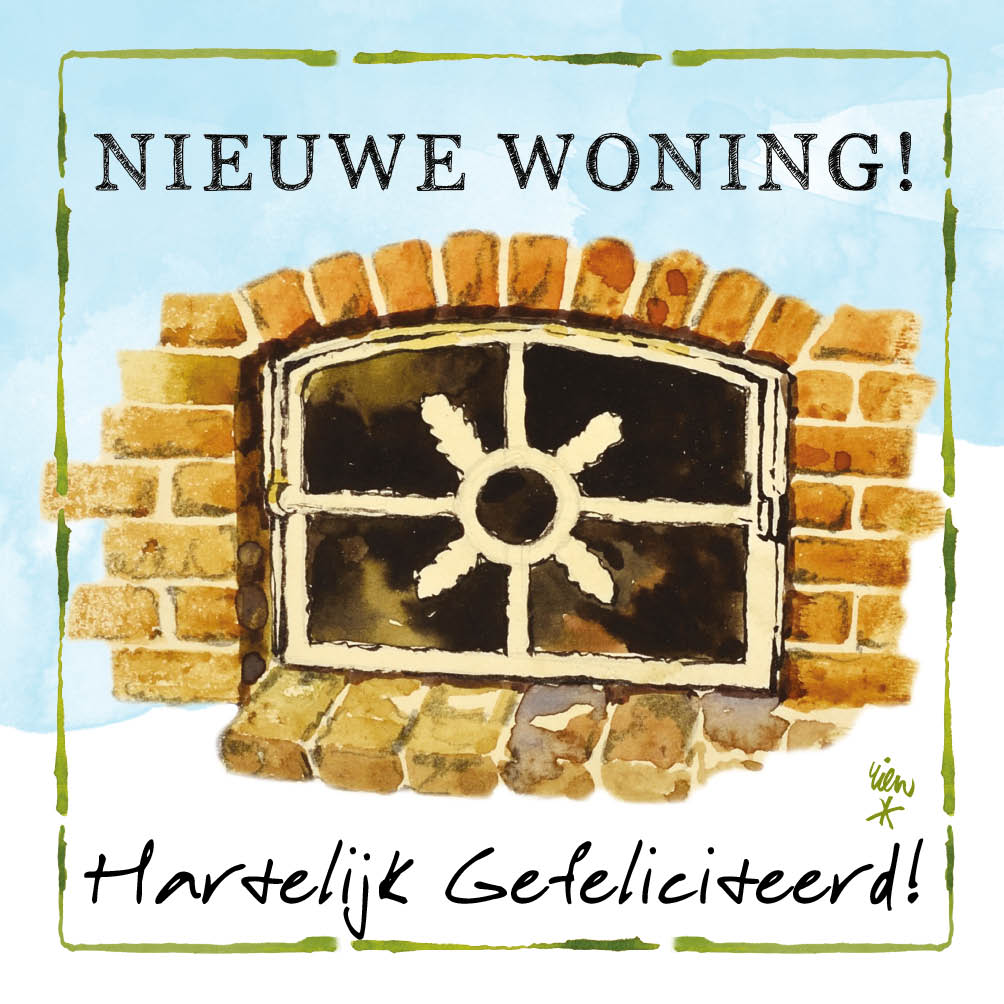 Rien Poortvliet, Lang Leve de boederij serie. Dubbele kaart 13,5×13,5 cm met envelop in cellofaan, Nieuwe Woning!