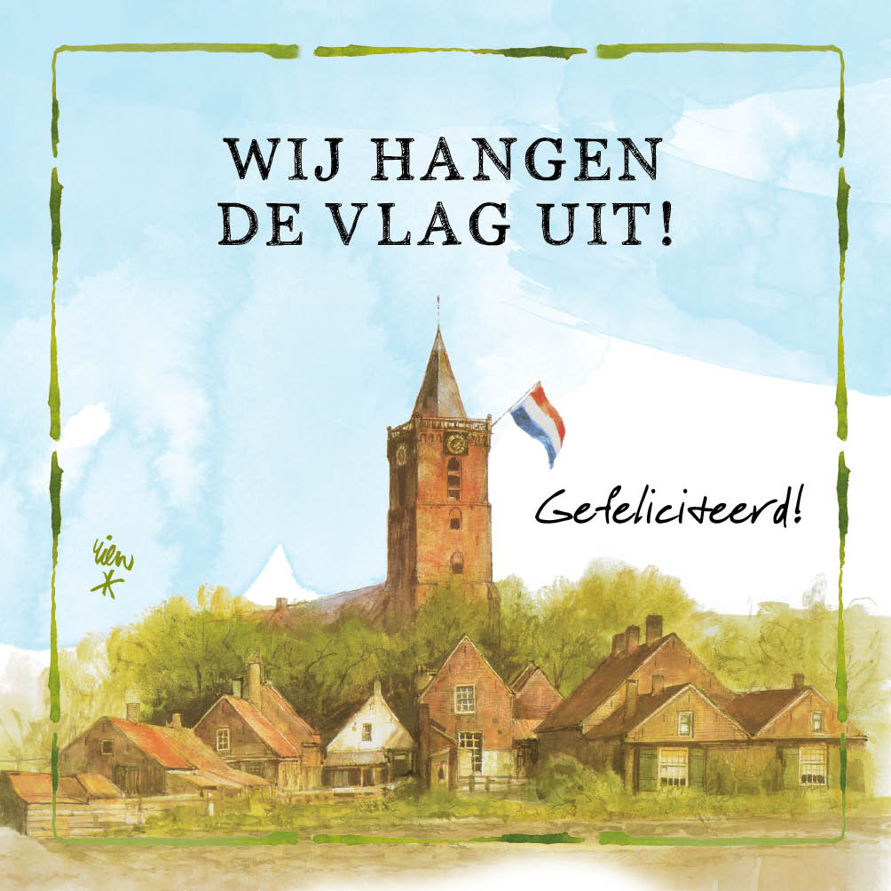 Rien Poortvliet, Lang Leve de boederij serie. Dubbele kaart 13,5×13,5 cm met envelop in cellofaan, Gefeliciteerd!