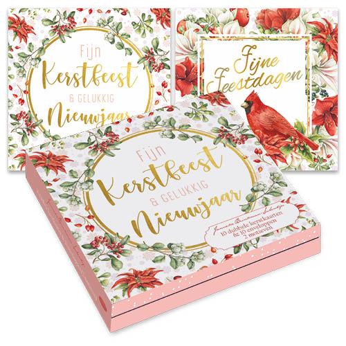 Kerstkaartendoosje van Janneke Brinkman – Salentijn met 10 (dubbele) wenskaarten en 10 enveloppen. De kaarten zijn 11,5 x 11,5 cm. De kerstkaarten zijn leverbaar vanaf september.