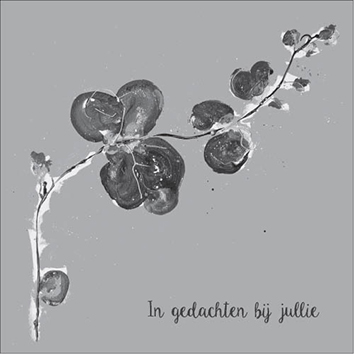 Sympahty kaart, met illustraties van Petit Paris, dubbele kaart (14×14 cm) met evenlop in cellofaan, In gedachten bij jullie