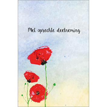 Sympahty kaart, met illustraties van Petit Paris, dubbele kaart (17×11,3 cm) met evenlop in cellofaan, Met oprechte deelneming