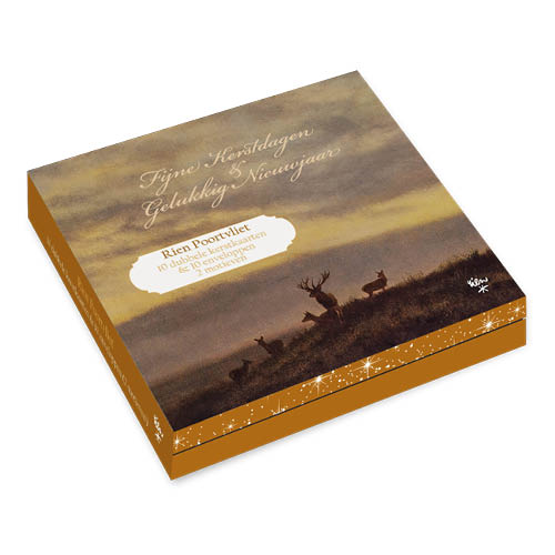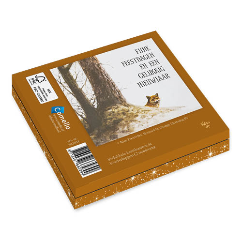 Kerstkaarten doosje van Dinie Bogaart met 10 (dubbele) wenskaarten en 10 enveloppen. De kaarten zijn 11,5 x 11,5 cm. De kerstkaarten zijn leverbaar vanaf september.