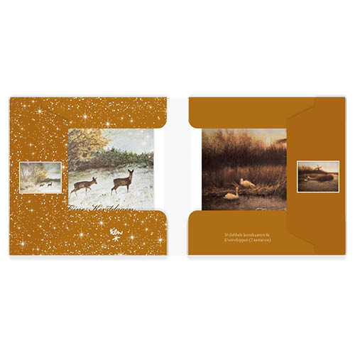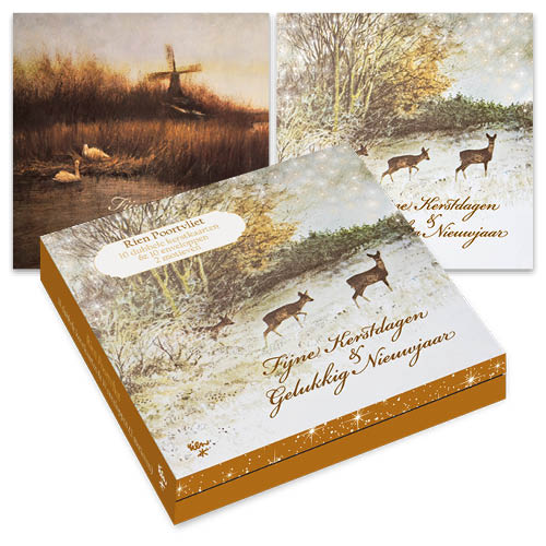 Kerstkaarten doosje van Rien Poortvliet Natuur met 10 (dubbele) wenskaarten en 10 enveloppen. De kaarten zijn 11,5 x 11,5 cm. De kerstkaarten zijn leverbaar vanaf september.