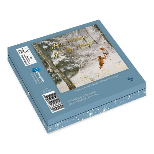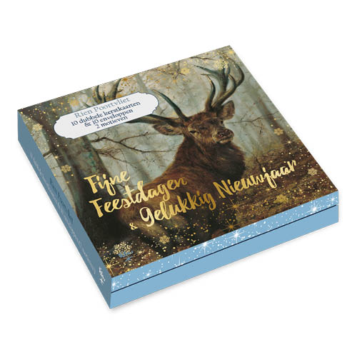 Kerstkaartendoosje van Rien Poortvliet Natuur met 10 (dubbele) wenskaarten en 10 enveloppen. De kaarten zijn 11,5 x 11,5 cm. De kerstkaarten zijn leverbaar vanaf september.