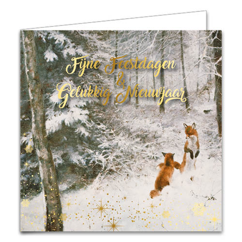 Rien Poortvliet natuur kerstkaartenmapje / Spelende vossen – Damhert