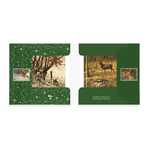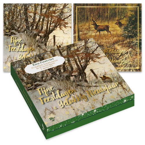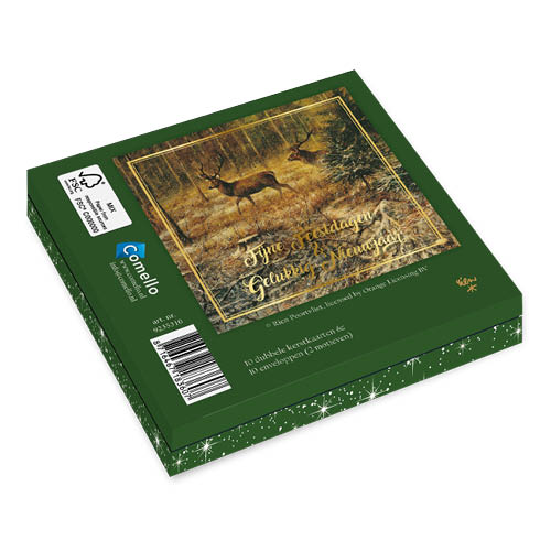 Kerstkaarten doosje van Franciens Katten met 10 (dubbele) wenskaarten en 10 enveloppen. De kaarten zijn 11,5 x 11,5 cm. De kerstkaarten zijn leverbaar vanaf september.